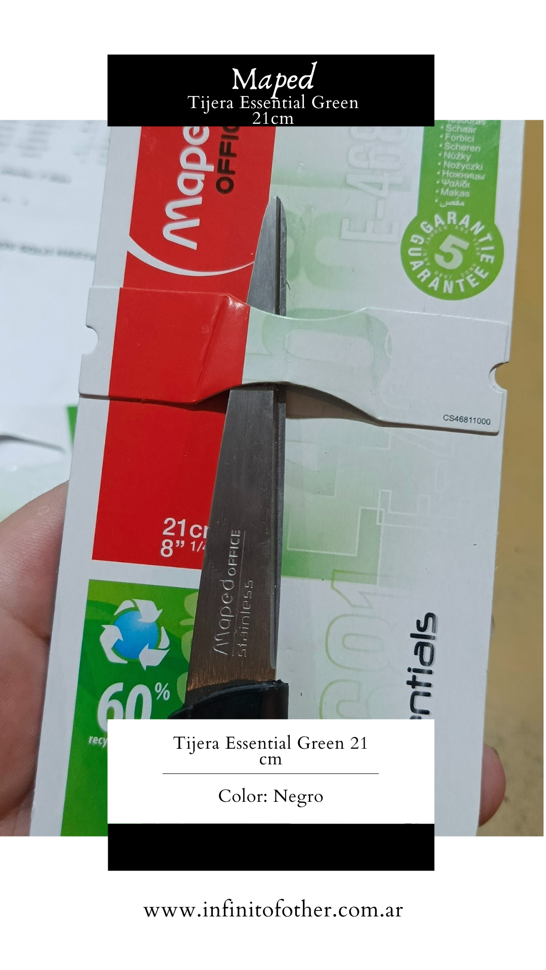 • Tijera marca MAPED, línea Essential Green
